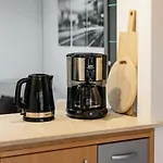Apartmán je vybaven kuchyní s rychlovarnou konvicí, myčkou nádobí a chladničkou, a také ovládáním klimatizace, vnitřním dvorkem, žehlicími prkny a příslušenstvími. Součástí apartmánových pokojů je i soukromé koupelna a terasa. Povlečení a hypoalergenní polštáře jsou k dispozici v apartmánu Sentvid. V koupelně jsou sprcha, fén a ručníky.